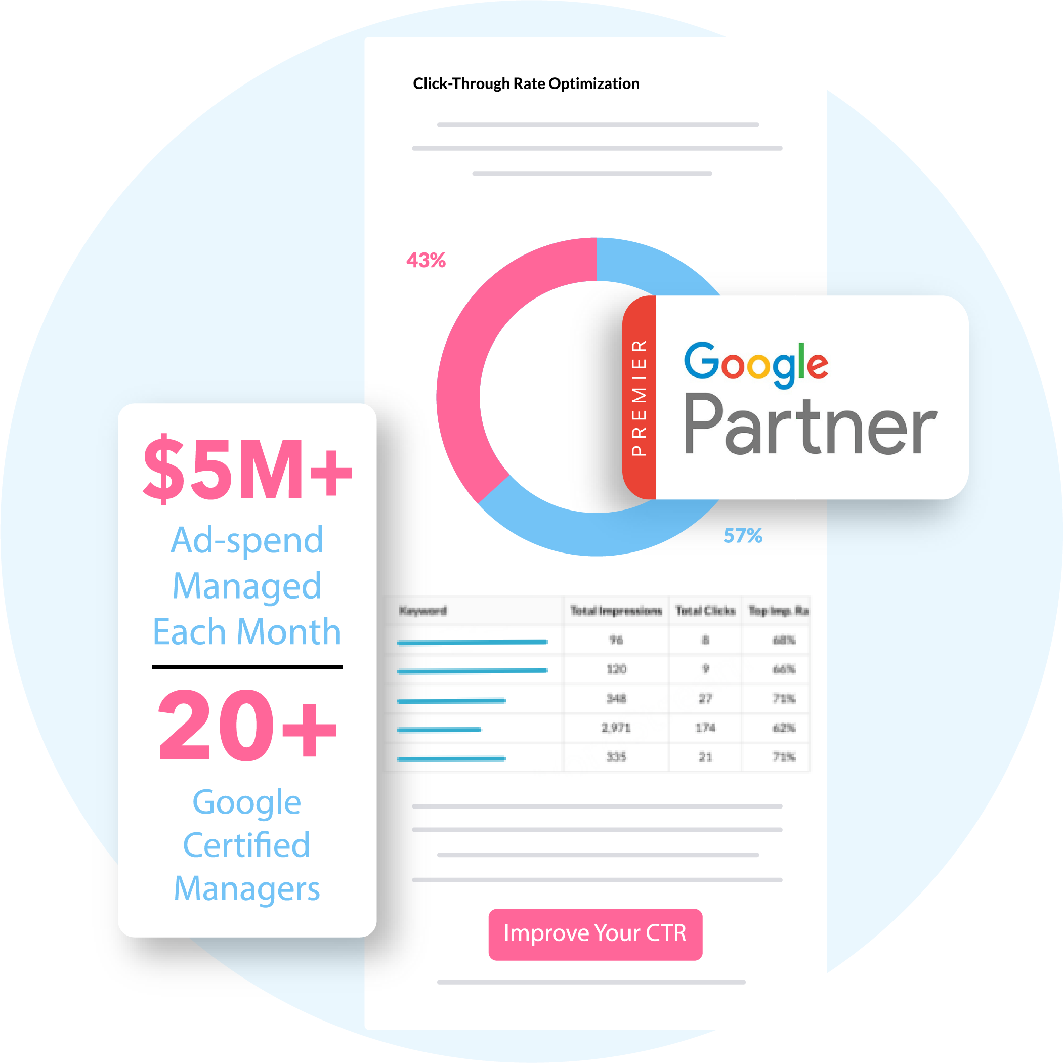 Unlock the power of Google Adwords with our expert management services tailored specifically for your industry. With a proven track record of maximizing ROI for over 2000 businesses across Canada and the USA, our dedicated team of Google Ads Certified experts oversees more than $5 Million in monthly Google Ads spending.